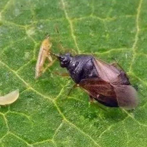 2、蟲害早期防治:建議用藍(lán)板進(jìn)行蟲情監(jiān)測或人工觀察,當(dāng)一張藍(lán)板上出現(xiàn)1-2頭薊馬時開始釋放小花蝽,平均釋放密度為1頭/㎡左右,間隔1-2周再釋放一次。如害蟲數(shù)量較多,則相應(yīng)增加釋放密度和釋放次數(shù)。